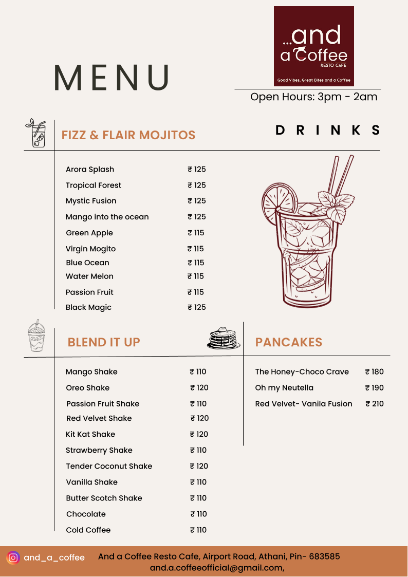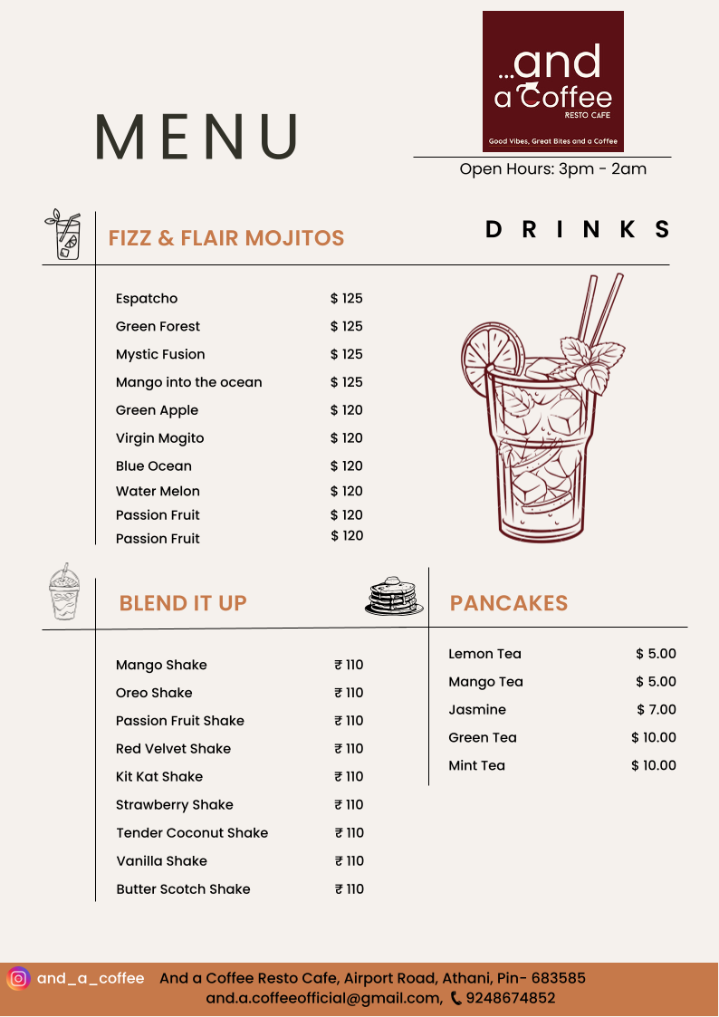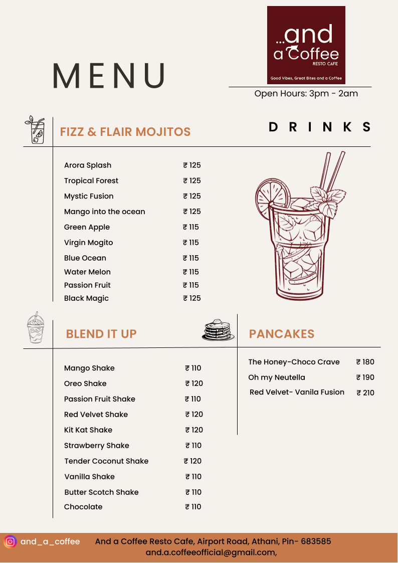 The menu is a vibrant tapestry, featuring refreshing Ice Teas that include flavors like Watermelon and Passion Fruit, each priced at ₹80. Their Fizz & Flair Mojitos, starting at ₹120, offer a cocktail-like experience with options such as Mango Into The Ocean and Green Forest. For a sweet treat, dive into their light Pancakes, available from just ₹5.
